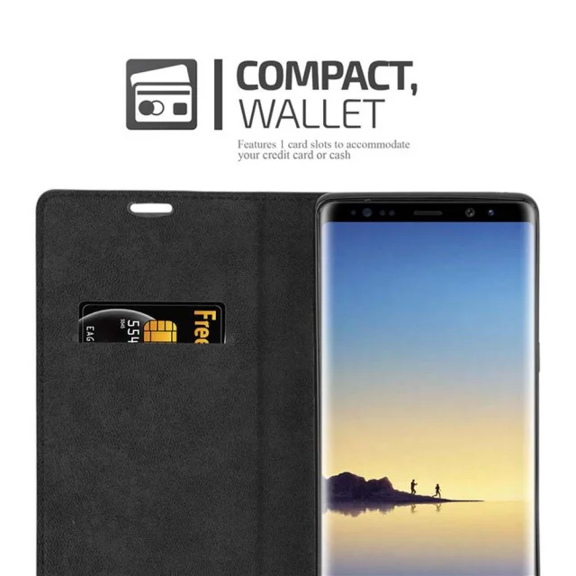 Cadorabo Ohišje, združljivo z Samsung Galaxy NOTE 8 v nočna črna - Zaščitni ovitek z magnetnim zapiranjem, stoječo funkcijo in režo za kartice