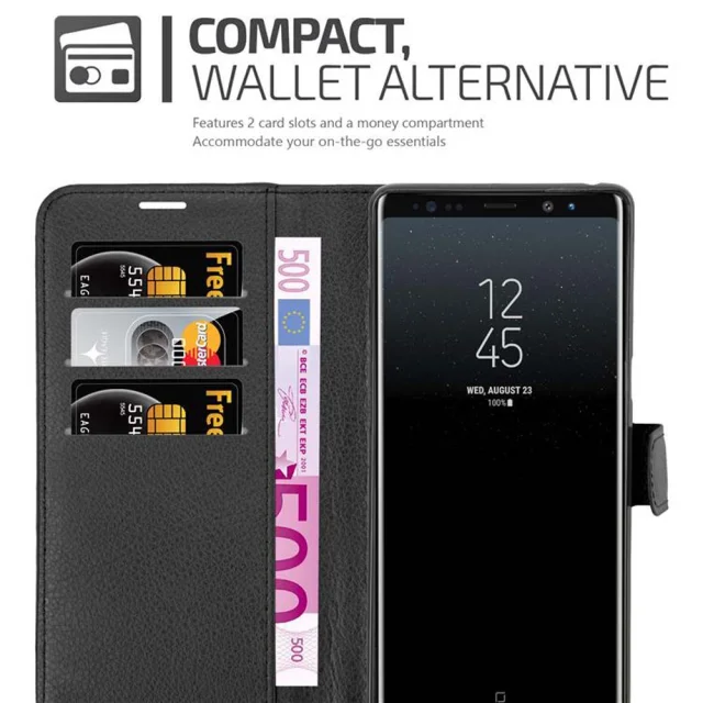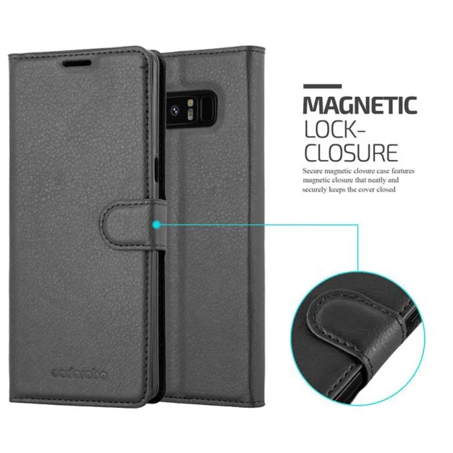 Cadorabo Ohišje, združljivo z Samsung Galaxy NOTE 8 v oksidna črna - Zaščitni ovitek z magnetnim zapiranjem, stoječo funkcijo in režo za kartice