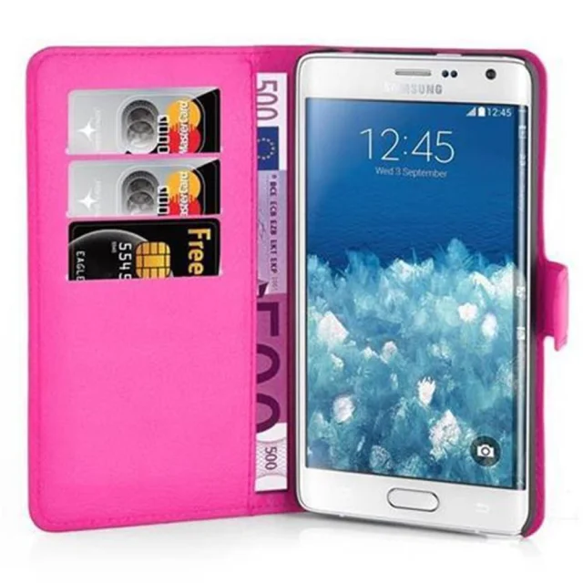 Cadorabo Ohišje, združljivo z Samsung Galaxy NOTE EDGE v vroča rožnata - Zaščitni ovitek z magnetnim zapiranjem, stoječo funkcijo in režo za kartice