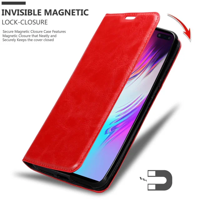 Cadorabo Ohišje, združljivo z Samsung Galaxy S10 5G v rdeče jabolko - Zaščitni ovitek z magnetnim zapiranjem, stoječo funkcijo in režo za kartice