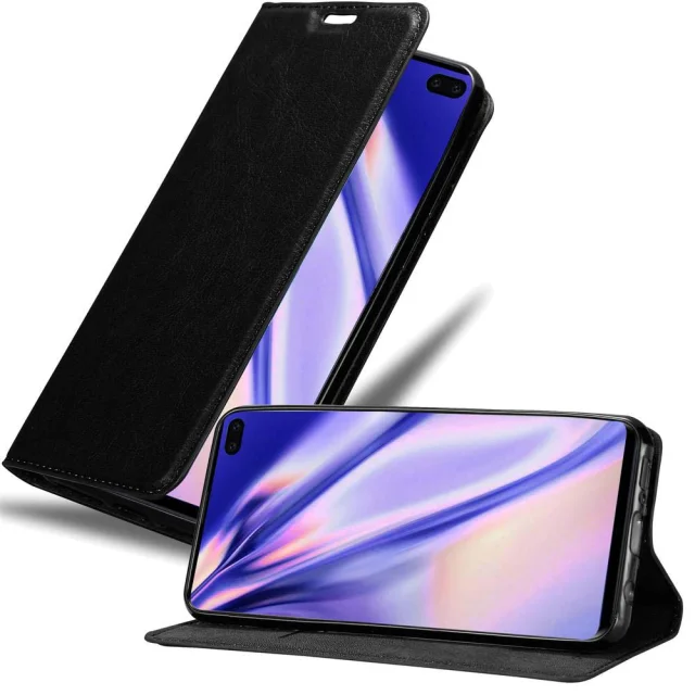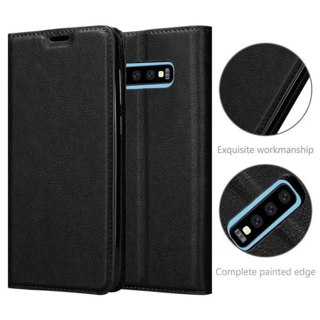 Cadorabo Ohišje, združljivo z Samsung Galaxy S10 PLUS v nočna črna - Zaščitni ovitek z magnetnim zapiranjem, stoječo funkcijo in režo za kartice