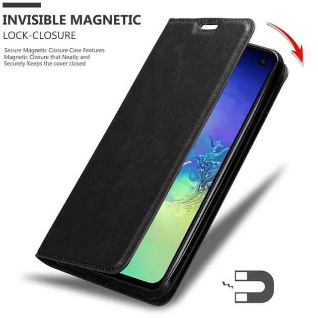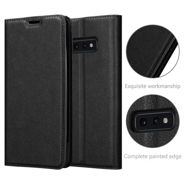 Cadorabo Ohišje, združljivo z Samsung Galaxy S10e v nočna črna - Zaščitni ovitek z magnetnim zapiranjem, stoječo funkcijo in režo za kartice