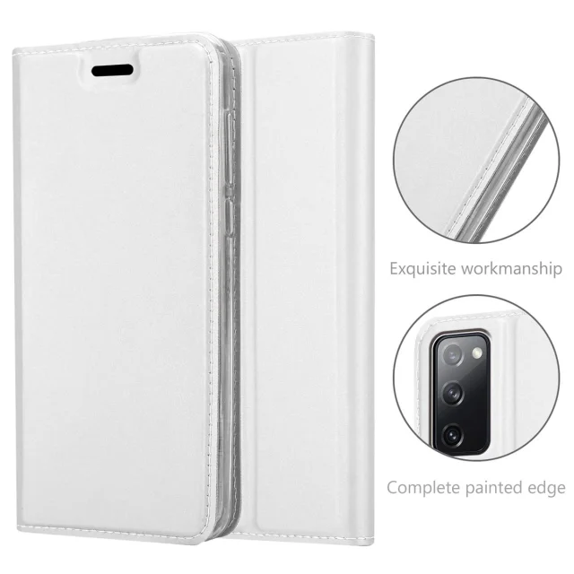 Cadorabo Ohišje, združljivo z Samsung Galaxy S20 FE v klasično srebrno - Zaščitni ovitek z magnetnim zapiranjem, stoječo funkcijo in režo za kartice