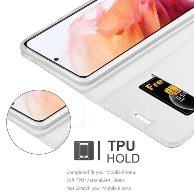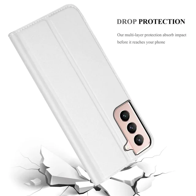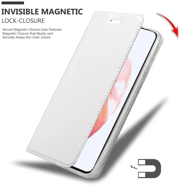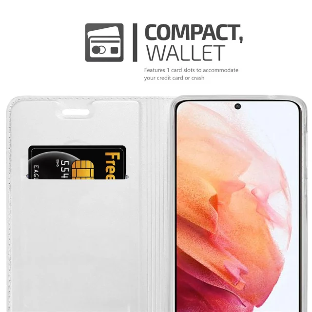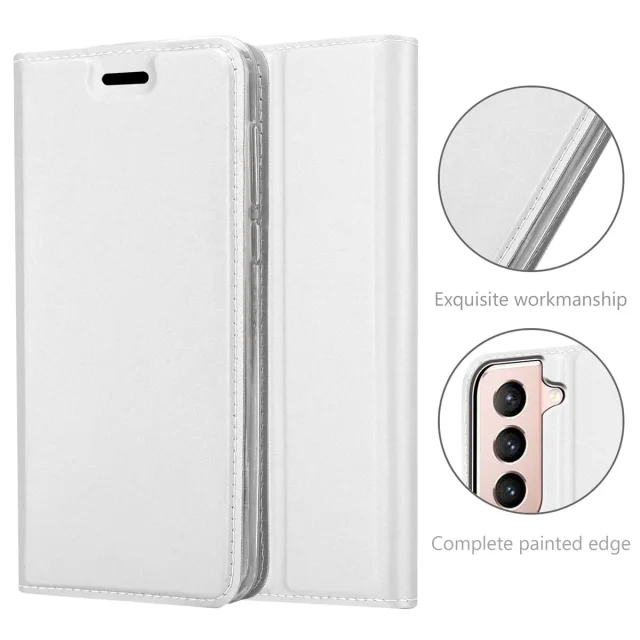 Cadorabo Ohišje, združljivo z Samsung Galaxy S21 5G v klasično srebrno - Zaščitni ovitek z magnetnim zapiranjem, stoječo funkcijo in režo za kartice