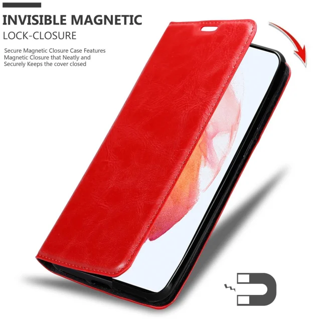 Cadorabo Ohišje, združljivo z Samsung Galaxy S21 5G v rdeče jabolko - Zaščitni ovitek z magnetnim zapiranjem, stoječo funkcijo in režo za kartice