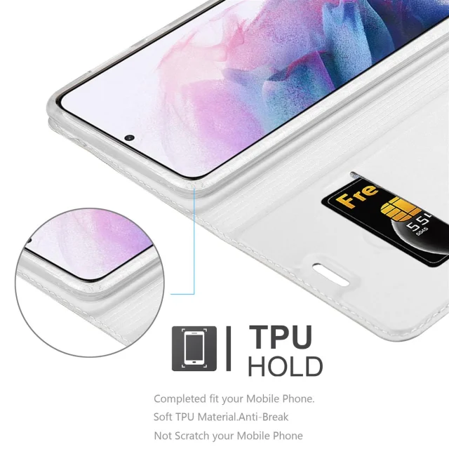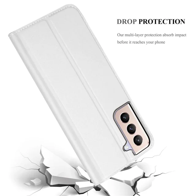 Cadorabo Ohišje, združljivo z Samsung Galaxy S21 PLUS v klasično srebrno - Zaščitni ovitek z magnetnim zapiranjem, stoječo funkcijo in režo za kartice