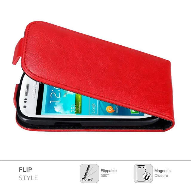 Cadorabo Ohišje, združljivo z Samsung Galaxy S3 MINI v rdeče jabolko - Zaščitni ovitek v obliki flipa z magnetnim zapiranjem