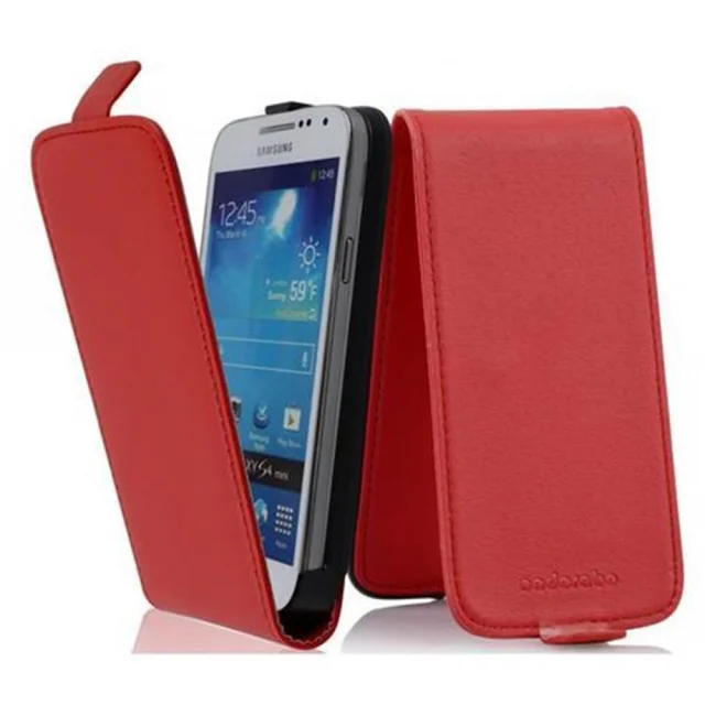 Cadorabo Ohišje, združljivo z Samsung Galaxy S4 MINI v čili rdeča - Zaščitni ovitek v obliki flipa iz gladkega umetnega usnja