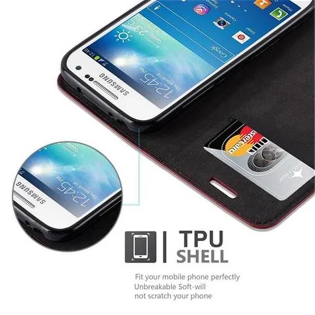 Cadorabo Ohišje, združljivo z Samsung Galaxy S4 MINI v rdeče jabolko - Zaščitni ovitek z magnetnim zapiranjem, stoječo funkcijo in režo za kartice