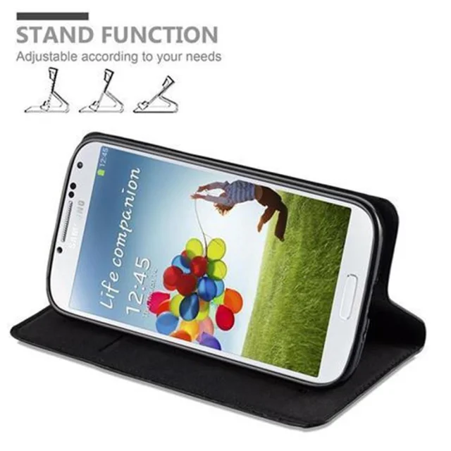 Cadorabo Ohišje, združljivo z Samsung Galaxy S4 v nočna črna - Zaščitni ovitek z magnetnim zapiranjem, stoječo funkcijo in režo za kartice
