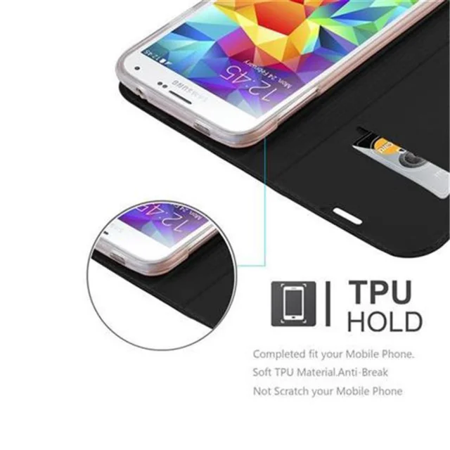 Cadorabo Ohišje, združljivo z Samsung Galaxy S5 / S5 NEO v klasična črna - Zaščitni ovitek z magnetnim zapiranjem, stoječo funkcijo in režo za kartice
