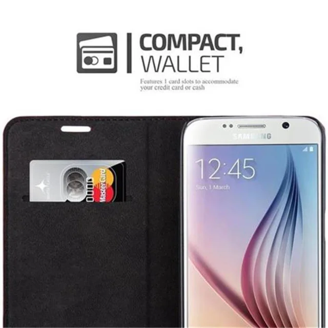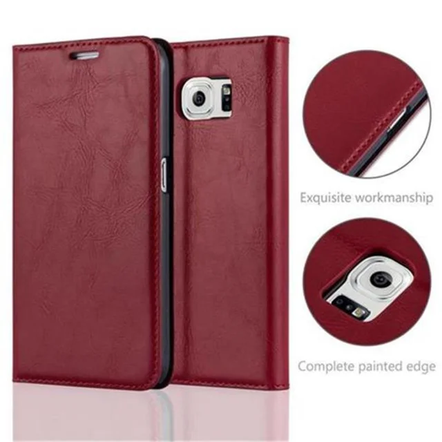 Cadorabo Ohišje, združljivo z Samsung Galaxy S6 v rdeče jabolko - Zaščitni ovitek z magnetnim zapiranjem, stoječo funkcijo in režo za kartice