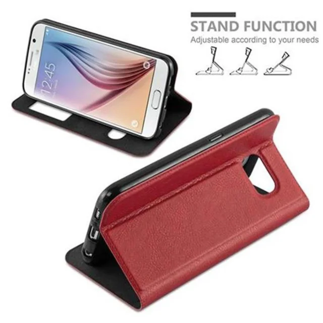 Cadorabo Ohišje, združljivo z Samsung Galaxy S6 v žafranovo rdeča - Zaščitni ovitek z magnetnim zapiranjem, stoječo funkcijo in 2 okencema za gledanje