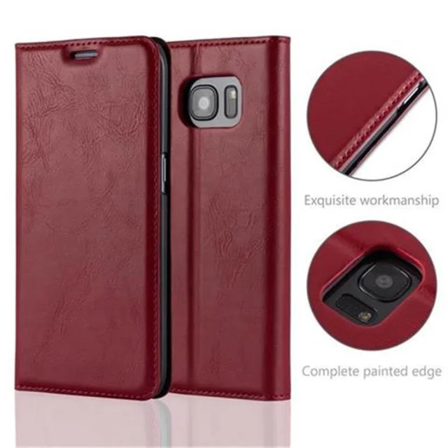 Cadorabo Ohišje, združljivo z Samsung Galaxy S7 EDGE v rdeče jabolko - Zaščitni ovitek z magnetnim zapiranjem, stoječo funkcijo in režo za kartice
