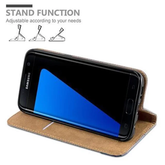 Cadorabo Ohišje, združljivo z Samsung Galaxy S7 EDGE v sivo modra - Zaščitni ovitek s stoječo funkcijo in režo za kartico v videzu bastarda