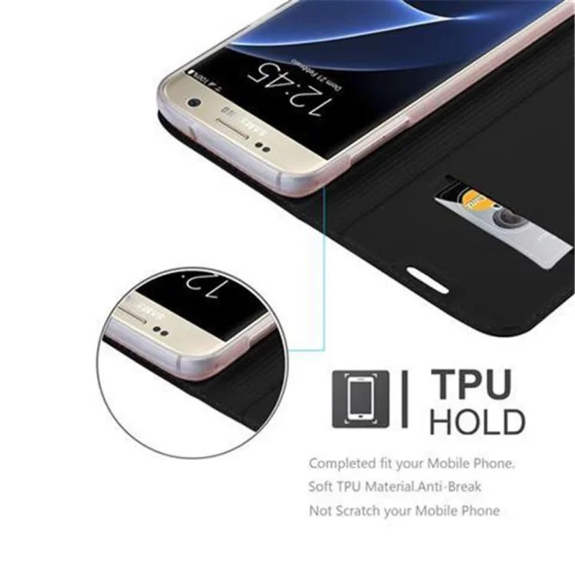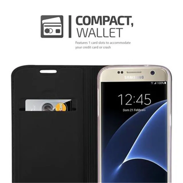 Cadorabo Ohišje, združljivo z Samsung Galaxy S7 v klasična črna - Zaščitni ovitek z magnetnim zapiranjem, stoječo funkcijo in režo za kartice