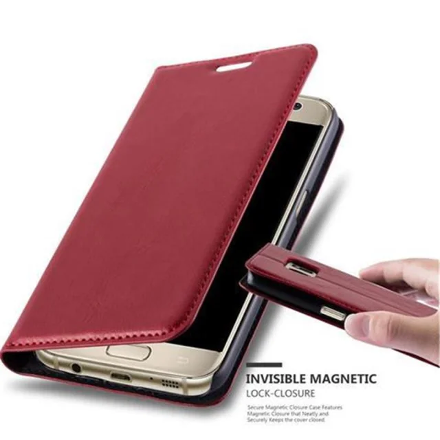 Cadorabo Ohišje, združljivo z Samsung Galaxy S7 v rdeče jabolko - Zaščitni ovitek z magnetnim zapiranjem, stoječo funkcijo in režo za kartice