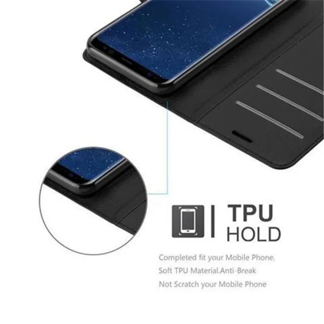 Cadorabo Ohišje, združljivo z Samsung Galaxy S8 v oksidna črna - Zaščitni ovitek z magnetnim zapiranjem, stoječo funkcijo in režo za kartice