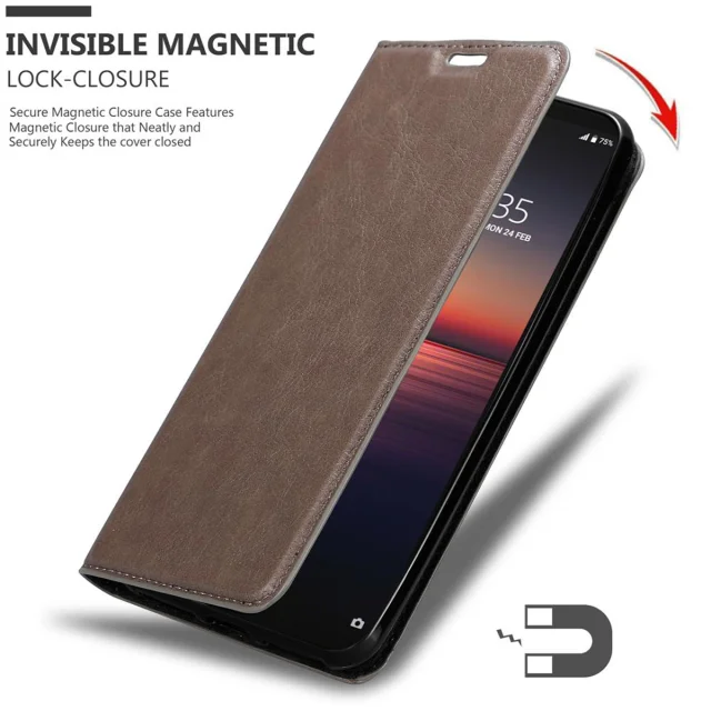 Cadorabo Ohišje, združljivo z Sony Xperia 1 II v kavovinsko rdeča - Zaščitni ovitek z magnetnim zapiranjem, stoječo funkcijo in režo za kartice