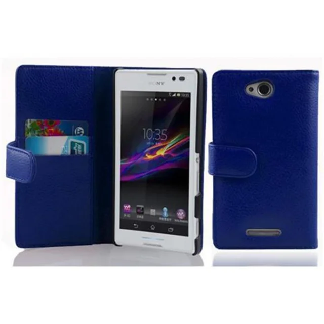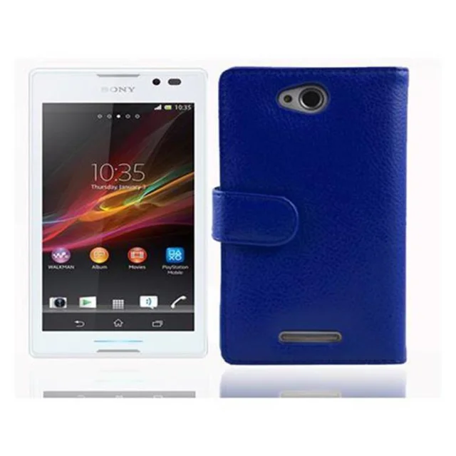 Cadorabo Ohišje, združljivo z Sony Xperia C v mornarsko modra - Zaščitni ovitek iz teksturiranega umetnega usnja in žep za kartice