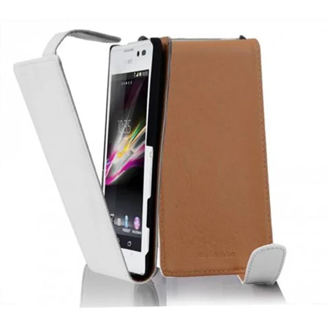 Cadorabo Ohišje, združljivo z Sony Xperia C v polarna bela - Zaščitni ovitek v obliki flipa iz gladkega umetnega usnja