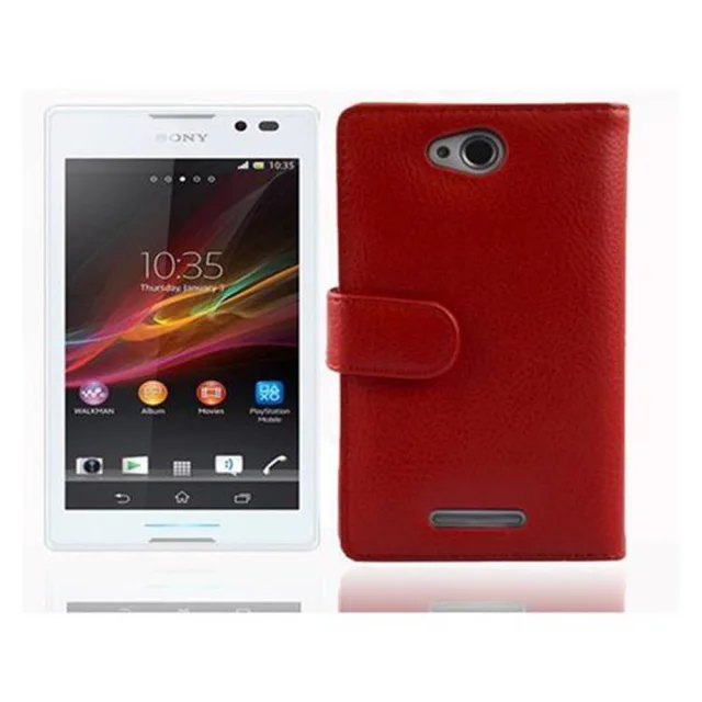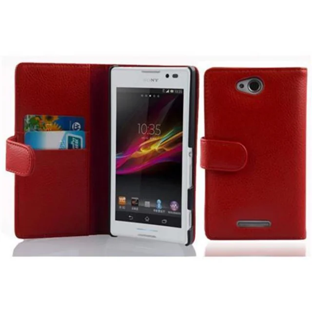 Cadorabo Ohišje, združljivo z Sony Xperia C v rdeče sladkorno jabolko - Zaščitni ovitek iz teksturiranega umetnega usnja in žep za kartice