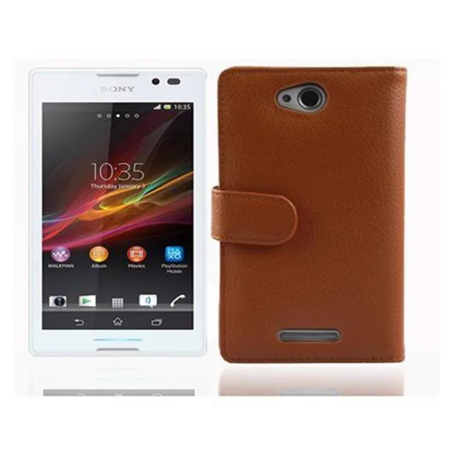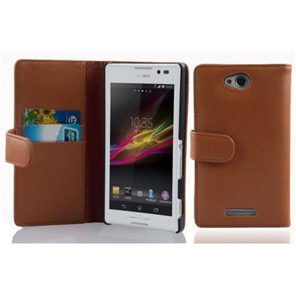 Cadorabo Ohišje, združljivo z Sony Xperia C v sedlo rjave barve - Zaščitni ovitek iz teksturiranega umetnega usnja in žep za kartice