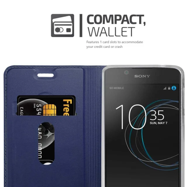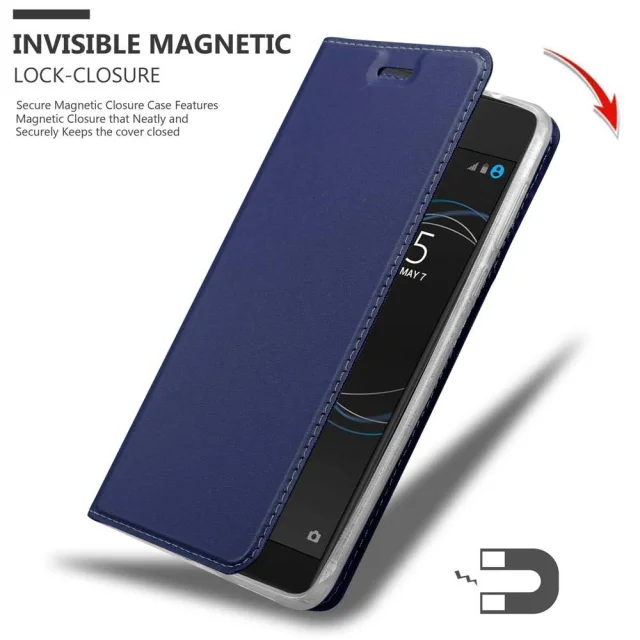 Cadorabo Ohišje, združljivo z Sony Xperia L1 v klasična temno modra - Zaščitni ovitek z magnetnim zapiranjem, stoječo funkcijo in režo za kartice