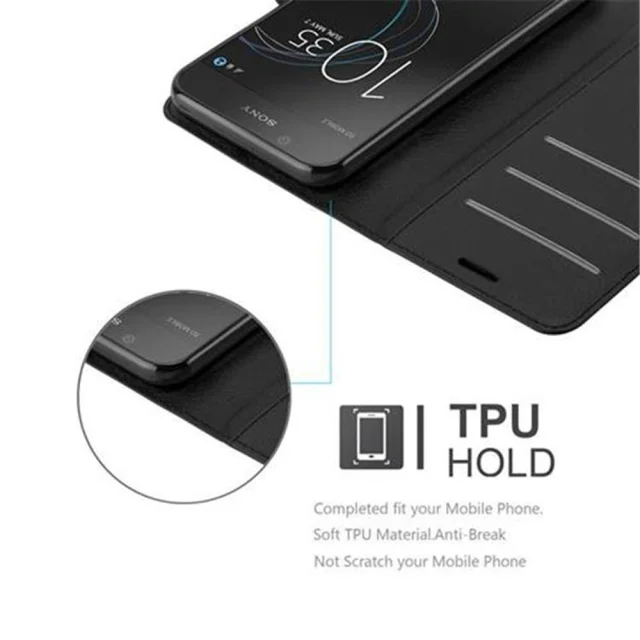 Cadorabo Ohišje, združljivo z Sony Xperia L1 v oksidna črna - Zaščitni ovitek z magnetnim zapiranjem, stoječo funkcijo in režo za kartice