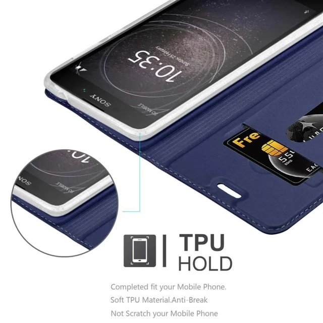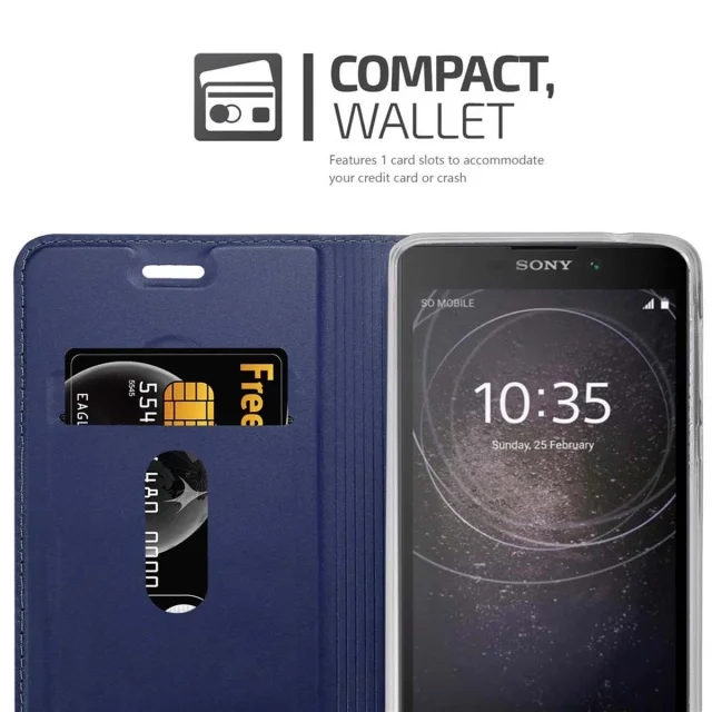 Cadorabo Ohišje, združljivo z Sony Xperia L2 v klasična temno modra - Zaščitni ovitek z magnetnim zapiranjem, stoječo funkcijo in režo za kartice
