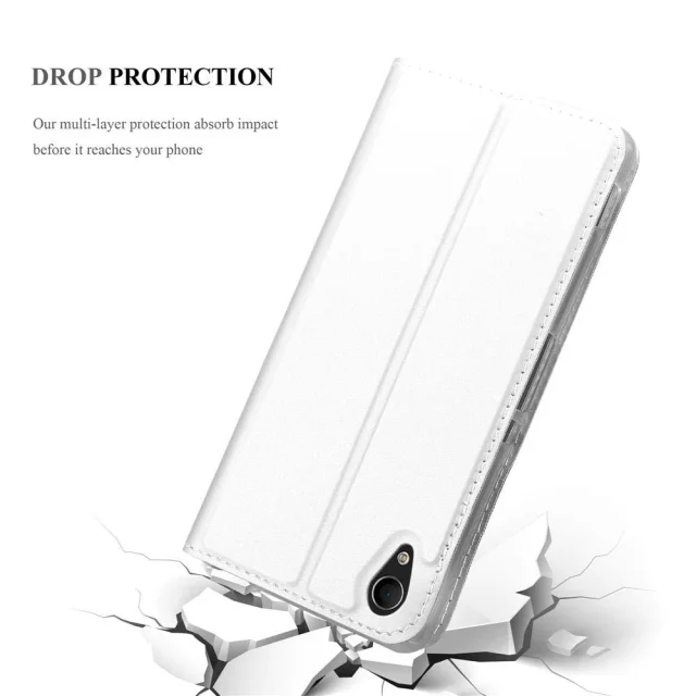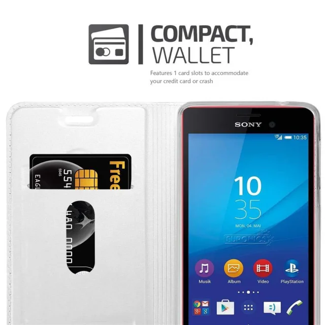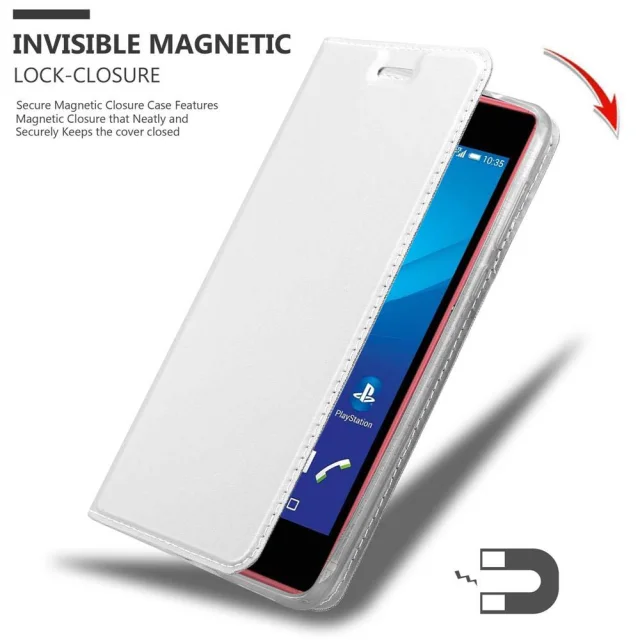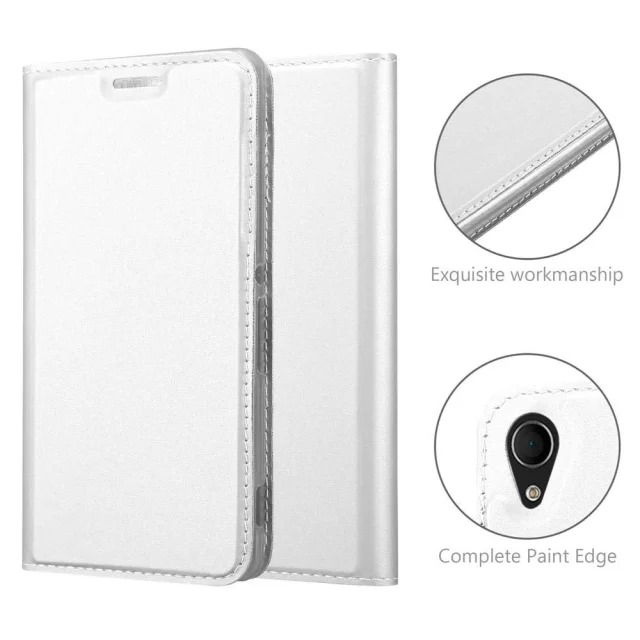Cadorabo Ohišje, združljivo z Sony Xperia M4 AQUA v klasično srebrno - Zaščitni ovitek z magnetnim zapiranjem, stoječo funkcijo in režo za kartice