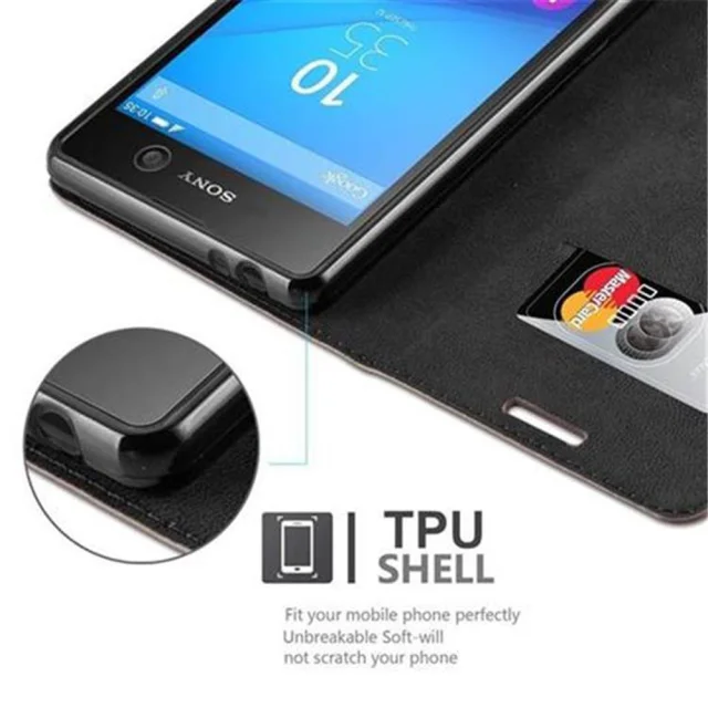 Cadorabo Ohišje, združljivo z Sony Xperia M5 v kavovinsko rdeča - Zaščitni ovitek z magnetnim zapiranjem, stoječo funkcijo in režo za kartice