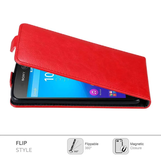 Cadorabo Ohišje, združljivo z Sony Xperia M5 v rdeče jabolko - Zaščitni ovitek v obliki flipa z magnetnim zapiranjem