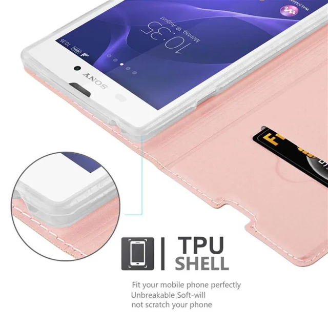 Cadorabo Ohišje, združljivo z Sony Xperia T3 v klasična rožnata zlata - Zaščitni ovitek z magnetnim zapiranjem, stoječo funkcijo in režo za kartice