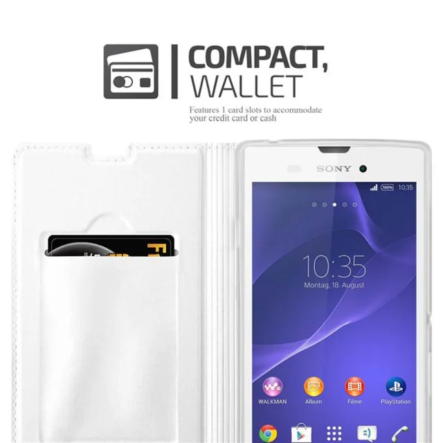 Cadorabo Ohišje, združljivo z Sony Xperia T3 v klasično srebrno - Zaščitni ovitek z magnetnim zapiranjem, stoječo funkcijo in režo za kartice