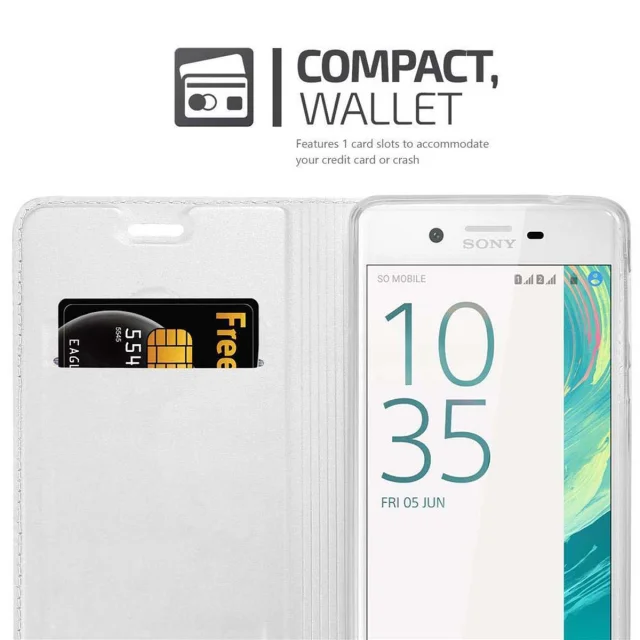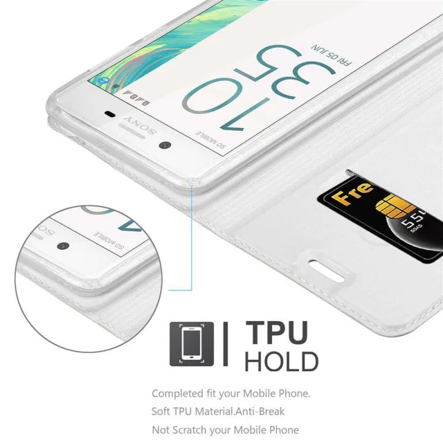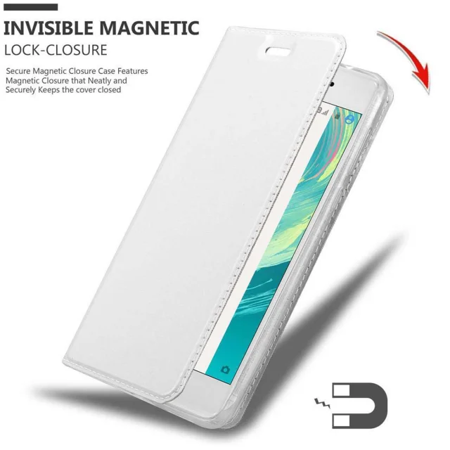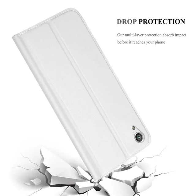 Cadorabo Ohišje, združljivo z Sony Xperia X v klasično srebrno - Zaščitni ovitek z magnetnim zapiranjem, stoječo funkcijo in režo za kartice