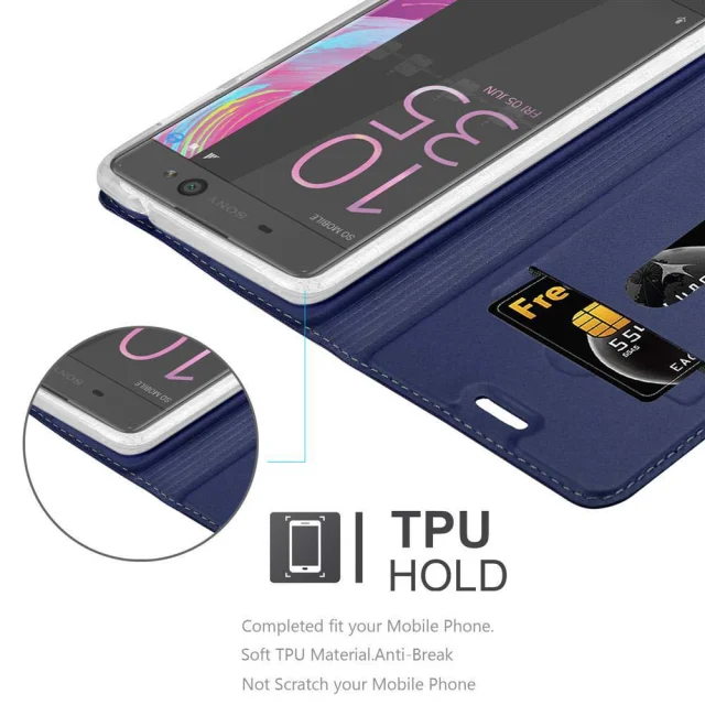 Cadorabo Ohišje, združljivo z Sony Xperia XA v klasična temno modra - Zaščitni ovitek z magnetnim zapiranjem, stoječo funkcijo in režo za kartice