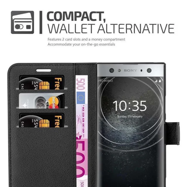 Cadorabo Ohišje, združljivo z Sony Xperia XA2 ULTRA v oksidna črna - Zaščitni ovitek z magnetnim zapiranjem, stoječo funkcijo in režo za kartice