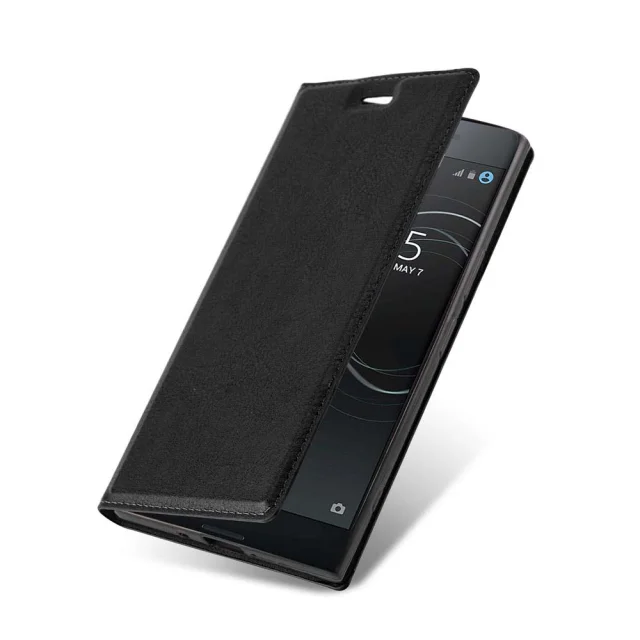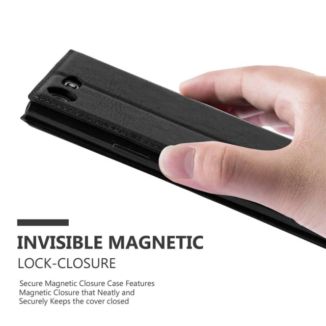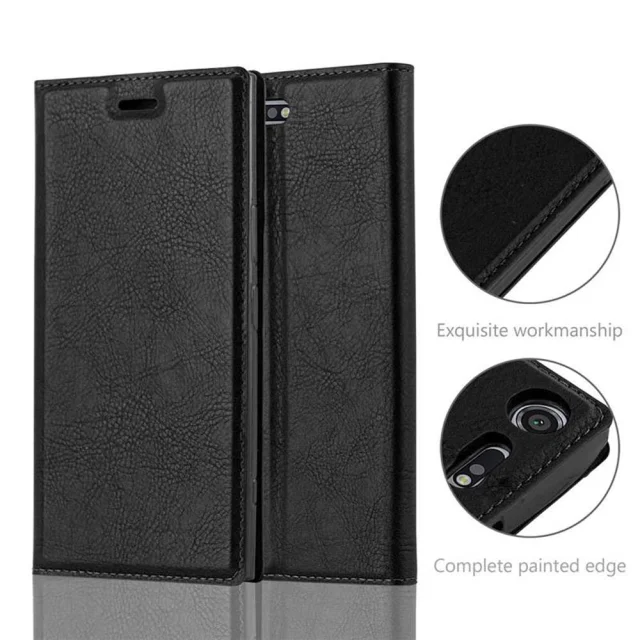 Cadorabo Ohišje, združljivo z Sony Xperia XZ1 COMPACT v nočna črna - Zaščitni ovitek z magnetnim zapiranjem, stoječo funkcijo in režo za kartice