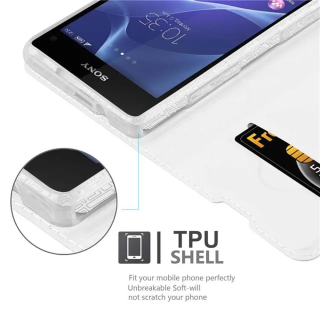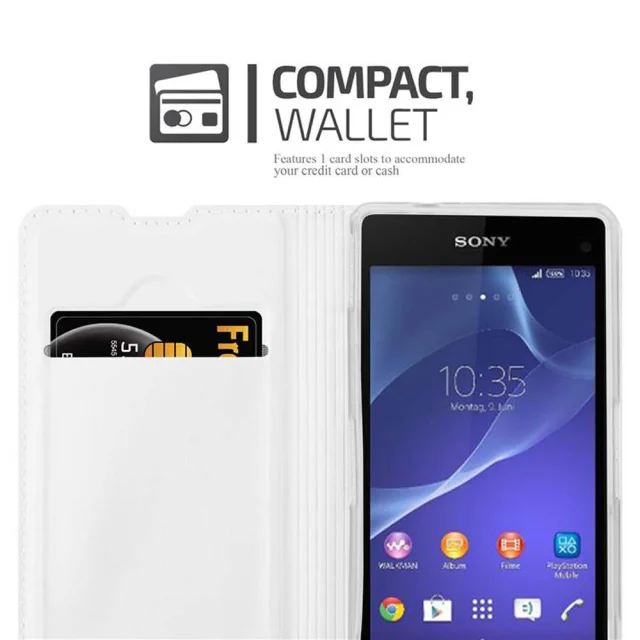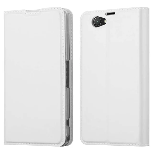Cadorabo Ohišje, združljivo z Sony Xperia Z1 COMPACT v klasično srebrno - Zaščitni ovitek z magnetnim zapiranjem, stoječo funkcijo in režo za kartice