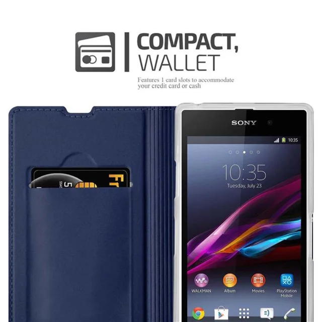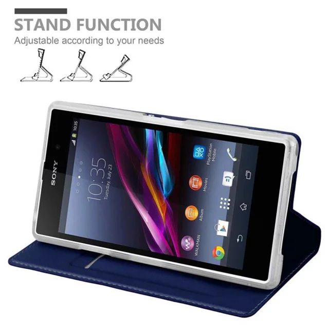 Cadorabo Ohišje, združljivo z Sony Xperia Z1 v klasična temno modra - Zaščitni ovitek z magnetnim zapiranjem, stoječo funkcijo in režo za kartice