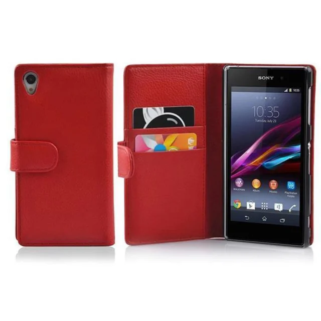 Cadorabo Ohišje, združljivo z Sony Xperia Z1 v rdeče sladkorno jabolko - Zaščitni ovitek iz teksturiranega umetnega usnja in žep za kartice