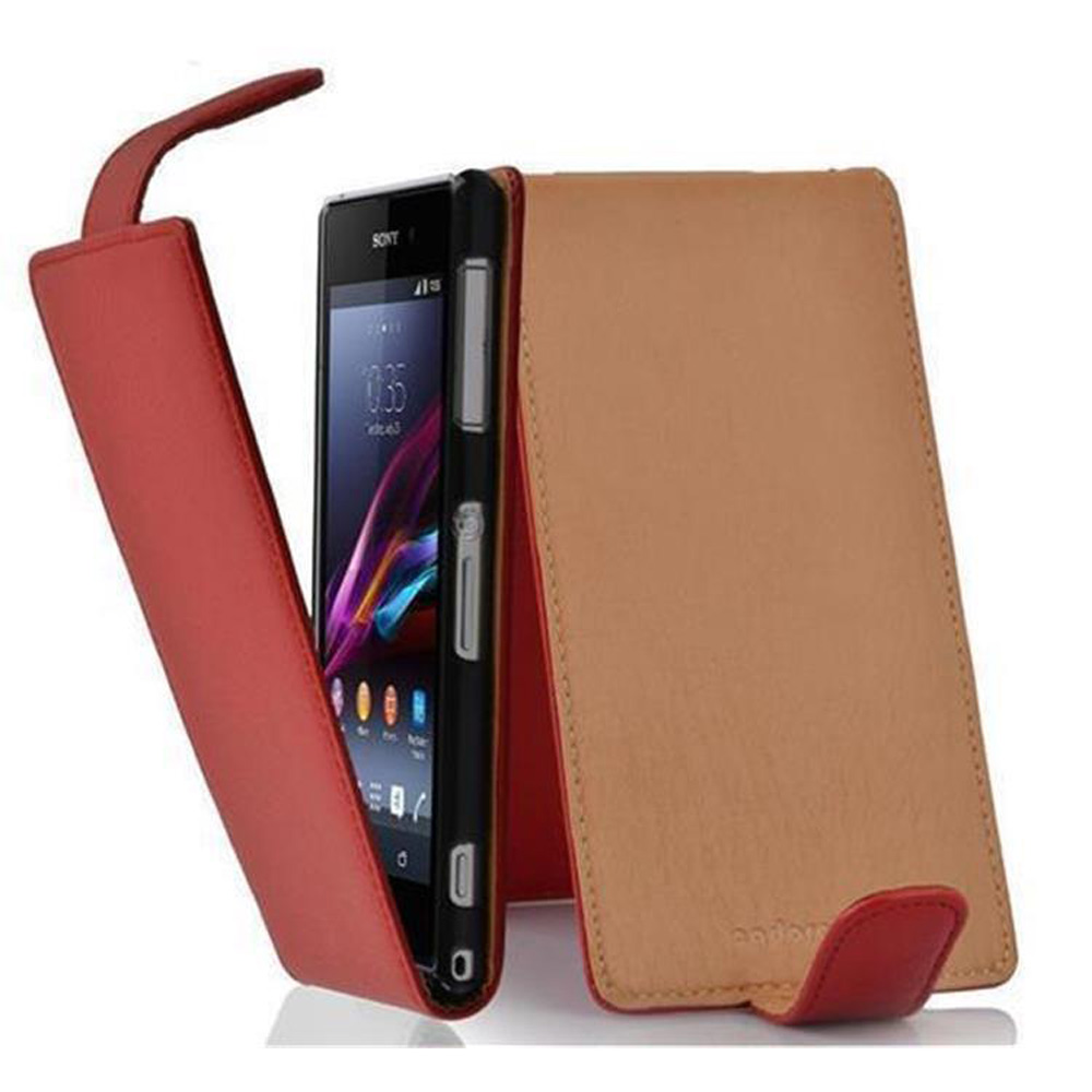 Cadorabo Ohišje, združljivo z Sony Xperia Z1 v rdeče sladkorno jabolko - Zaščitni ovitek v obliki flipa iz teksturiranega umetnega usnja