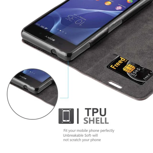 Cadorabo Ohišje, združljivo z Sony Xperia Z2 COMPACT v kavovinsko rdeča - Zaščitni ovitek z magnetnim zapiranjem, stoječo funkcijo in režo za kartice