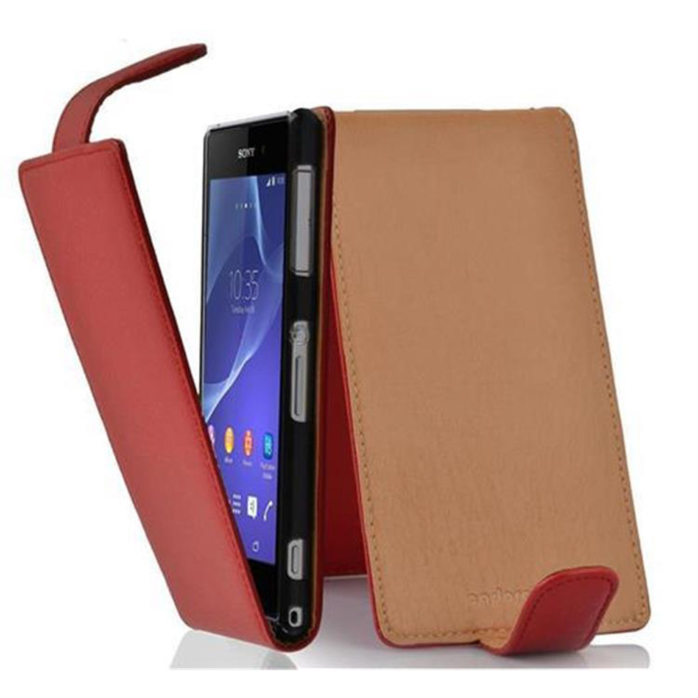 Cadorabo Ohišje, združljivo z Sony Xperia Z2 v rdeče sladkorno jabolko - Zaščitni ovitek v obliki flipa iz teksturiranega umetnega usnja