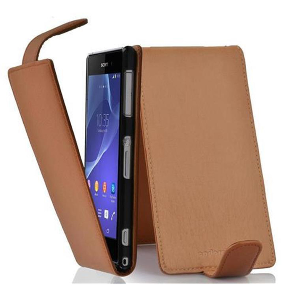 Cadorabo Ohišje, združljivo z Sony Xperia Z2 v sedlo rjave barve - Zaščitni ovitek v obliki flipa iz teksturiranega umetnega usnja