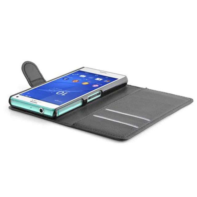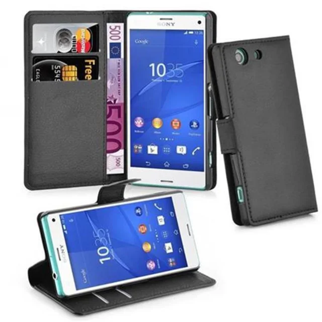 Cadorabo Ohišje, združljivo z Sony Xperia Z3 COMPACT v oksidna črna - Zaščitni ovitek z magnetnim zapiranjem, stoječo funkcijo in režo za kartice