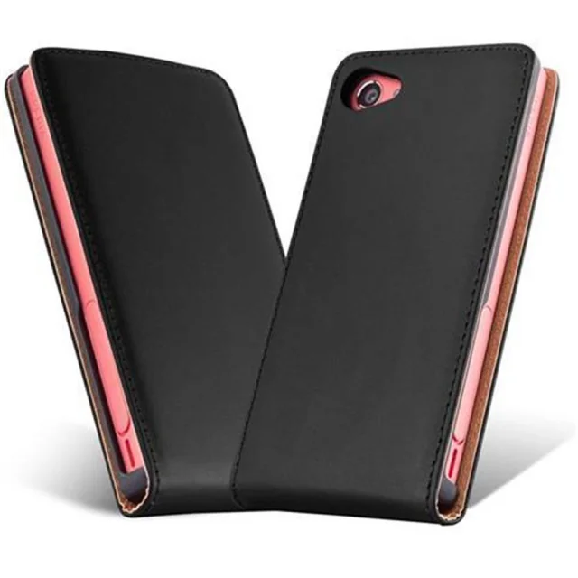 Cadorabo Ohišje, združljivo z Sony Xperia Z5 COMPACT v kaviar črna - Zaščitni ovitek v obliki flipa iz gladkega umetnega usnja