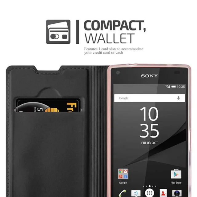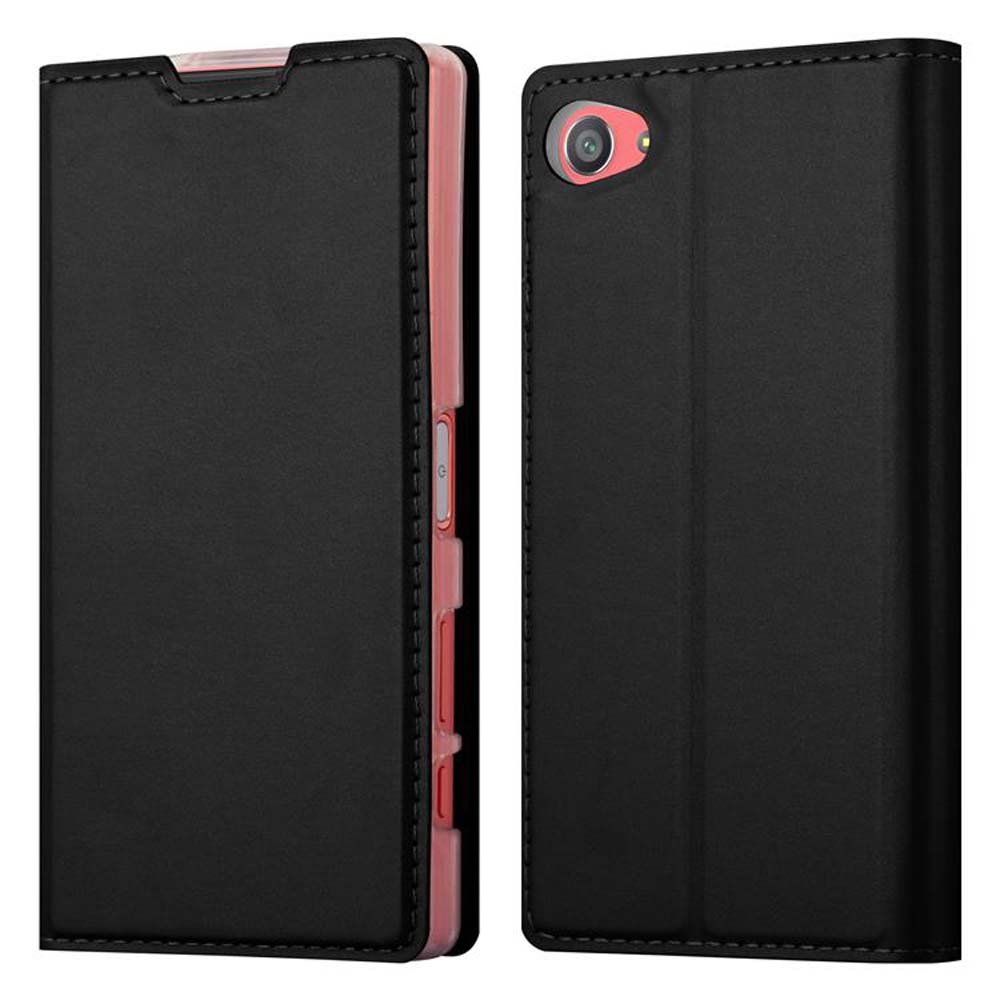 Cadorabo Ohišje, združljivo z Sony Xperia Z5 COMPACT v klasična črna - Zaščitni ovitek z magnetnim zapiranjem, stoječo funkcijo in režo za kartice