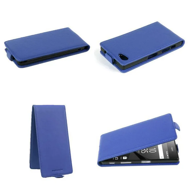 Cadorabo Ohišje, združljivo z Sony Xperia Z5 PREMIUM v mornarsko modra - Zaščitni ovitek v obliki flipa iz teksturiranega umetnega usnja